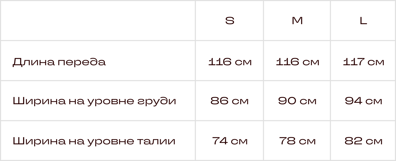 УХОД: Ручная стирка. Не замачивать. Не отбеливать. Сушка в машине запрещена. Гладить со специальной насадкой на подошве утюга. Профессиональная сухая чистка, мягкий режим.